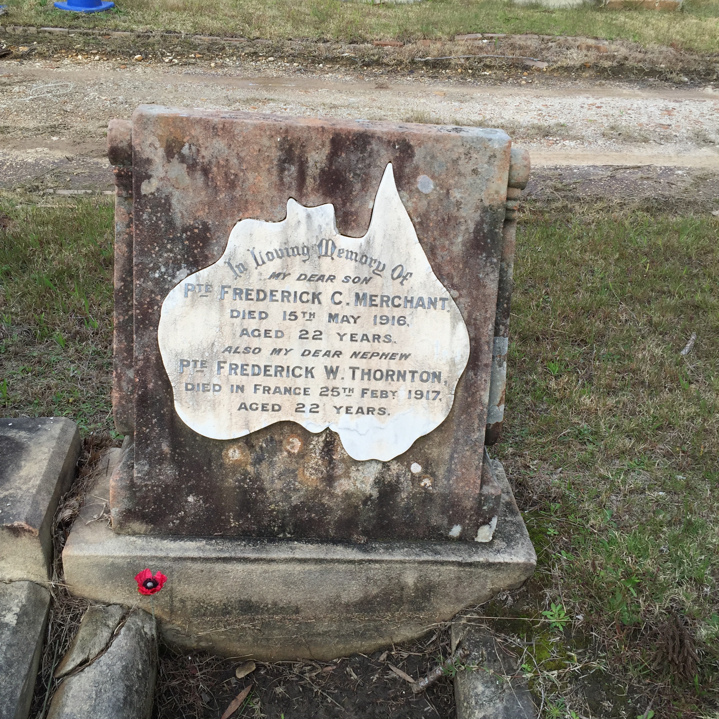 Frederick Charles (listed as Marchant in NAA files) enlisted on 14th February 1916. He was 21 and was employed as a ship trimmer. He sported a tattoo of a Kangaroo and the Australian Flag on his right arm.